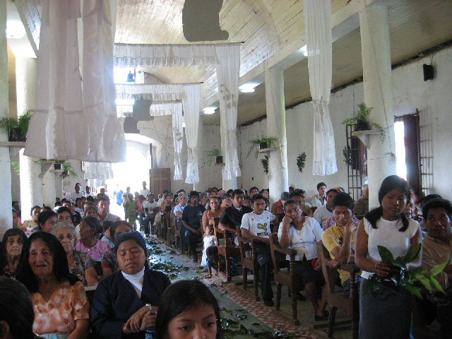 Meno male che i bambini a scuola studiano anche lo spagnolo e così li “sfruttiamo” per farci da traduttori… Dopo la Messa che finisce alle 20.30 circa ci attende la lunga camminata fino al fuoristrada ma le sorprese oggi non sono ancora finite e prima di intraprendere il viaggio di ritorno ci invita a cena la famiglia dei figliocci di Padre Ottavio: brodo di pollo, riso, pollo e tortillas che sono buonissime, le migliori mangiate fino ad ora… Apprezziamo il buon cibo e grazie alle fioca luce delle candele non prestiamo troppa antenzione all’ambiente circostante tanto da non renderci conto che ci sono bambini che dormono dappertutto i più piccoli addirittura appesi al soffitto mediante delle piccole amache… La notte è illuminata da una splendida piena: lassù Qualcuno ci ama!!!. Dopo la nostra lunga camminata verso il fuoristrada ci attendono altre due ore di viaggio, questa volta gli umani tutti dentro, stretti come sardine, e le galline in palangana… Arriviamo a casa che sono quasi le 23 stanchi morti ma felicissimi dopo questa giornata ricca di emozioni…