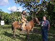 Io e le ragazze assieme a Padre Mariano ci uniamo a loro e così subito dopo pranzo si parte per quella che si rivelerà una splendida avventura… Prima di andare dalla figlioccia di Padre Alberto, bisogna fare un’altra “commissione”: c’è da portare un lettino all’aldea della Esmeralda necessario per il loro “ospedale”. Si parte dunque: io e Francesca in palangana assieme a due ragazzi di Los Ulivos e al famoso lettino, gli altri dentro. Il viaggio in palangana è lungo e divertente, il fuori strada di Padre Ottavio attraversa fiumi che ci rinfrescano il viso ed i vestiti e grosse pozzanghere di fango fresco che vi lascio immaginare come ci riducono viso e vestiti… Il panorama che si gode dalla palangana, assieme alle tante risate che ci facciamo valgono la pena dello sballottamento e del fango dappertutto… Dopo due ore di viaggio arriviamo alla Esmeralda dove lasciamo il lettino e ci dirigiamo a casa della famiglia di Lucrezia dove arriviamo dopo una mezz’ora circa. L’accoglienza che ci riservano i compari di Padre Alberto è splendida e buonissima la limonata che ci offrono… Lucrezia è ancora a scuola, esce alle 16 ma impiega circa un ora per arrivare a casa, decidiamo di aspettarla ed in tanto visitiamo la fattoria e assistiamo al meraviglioso spettacolo di un vitellino appena venuto alla luce.