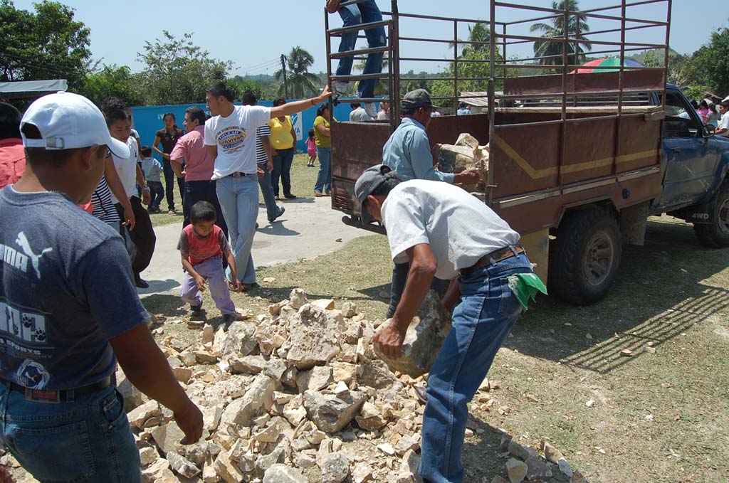 Prima di uscire dalla chiesa un incaricato avverte il “pueblo” che è necessario portare all’interno del recinto le pietre scaricate che si trovano all’esterno e che serviranno per l’ampliamento della sacrestia. Approfitta della presenza di tante persone perché non è giusto che lavorino sempre gli stessi…..Tutti, grandi, piccoli, giovani e anziani a seconda delle loro possibilità, raccolgono una pietra (alcune sono veramente grandi e pesanti) facendo a gara a chi la porta più pesante, sempre con il sorriso sulle labbra.