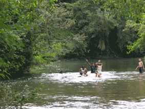 sono andati al fiume per un bagno rinfrescante e poi tutti abbiamo approfittato del pranzo preparato dalle mamme dei bambini della Prima Comunione: tutta l'aldea è invitata e tutti fanno festa al buon cibo.