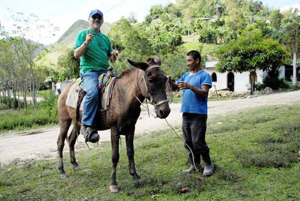 Con P. Ottavio ci rendiamo subito conto di aver fatto i conti senza l’oste perchè non abbiamo tenuto conto della famosa ora “chapina”: noi siamo arrivati puntuali alle 7,00, ma alle 7,30 non vediamo ancora nessuno. Passo il tempo a fare fotografie mentre P. Ottavio parla con Don Rafael, il signore presso il quale lasceremo parcheggiata la macchina. Le 8,30 le 9,30 le 10,30; finalmente verso le 11,00, da dietro una collina, vediamo spuntare dei cavalli. Ramon, il nostro accompagnatore, sta arrivando. Siamo esausti di aspettare ma con P. Ottavio vediamo la fine della nostra lunga attesa: finalmente si parte. I cavalli (per quanto ne sappia poco sembrano più muli) oramai sono vicinissimi a noi, ma non mi sembrano come quelli che si vedono nei film western. Che delusione!! Comunque, a quel punto, cavalli o muli ci avrebbero dovuto portare fino al villaggio. Arriva poi un giovane che conduce un altro cavallo/mulo che chiama “Macho”, macio. Uno degli animali viene utilizzato per distribuire i materiali da portare al villaggio (zaini, sacchi a pelo, un quadro con un’immagine sacra e due sacchi di mais).