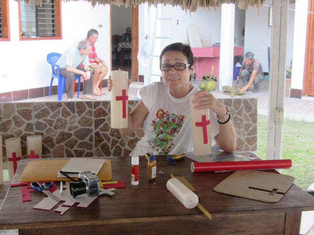 Lo stesso discorso vale anche per la decorazione dei ceri. Sempre Sor Angelica e Sor Imelda - anche lei hija/figlia della carità - ci hanno chiesto di aiutarle a decorare i ceri pasquali che sarebbero stati utilizzati nelle chiesette delle aldee. Le signore che si occupano della produzione delle candele si sono ingegnate e con i tubi in PVC di diverso diametro e con la paraffina - procurata da P. Ottavio - hanno realizzato i ceri pasquali di diverse dimensioni e quindi di diverso prezzo (le dimensioni dipendono dal fatto di trovare un catechista veramente in gamba che riesca a coinvolgere le persone del villaggio e quindi ad accendere il cero più spesso per le celebrazioni). Va da sé che se il cero viene acceso poco perché nel villaggio ci sono pochi cattolici, anche i soldini per pagare il cero scarseggiano. Così per evitare di aumentare le spese di realizzazione limitandole alla paraffina, con Barbara siamo andate a cercare carta colorata autoadesiva per le croci, numeri colorati e di diverse dimensioni per realizzare il “2012” da mettere ai quattro angoli della croce, mentre Francisco e Marcello hanno cercato su internet e fatto stampare l'“Alfa” e l' “Omega” da mettere in cima e in basso alla croce. Poi Barbara e Marcello hanno avuto la pazienza di ritagliare la carta rossa per fare le croci, di rifilarne i bordi con brillantini dorati, di applicare i numeri e l'Alfa e l'Omega. Non è venuto un lavoro perfetto perché gli strumenti a disposizione scarseggiavano ed ogni volta che mancava qualcosa o non ci piaceva il lavoro dovevamo andare a Poptùn - a circa 20 Km. da Dolores - utilizzando i microbus perché non si ha una macchina a disposizione (e se anche l'avessimo qui è più “igenico” non guidare). La parte meno simpatica è avvenuta nel momento in cui Sor Imelda ha informato i catechisti che sarebbe stato consegnato loro il cero pasquale, mettendo però in evidenza che qualcuno (facendo nomi e cognomi - che vergogna!!!) l'anno scorso “si era passato=non lo aveva ancora pagato” proponendo pertanto di pagare il 50% di quello dello scorso anno e il 50% di quello di quest'anno (tenete conto che ne erano stati fatti di 3 dimensioni: uno da 200, uno da 300 e uno da 400 quetzales, rispettivamente circa 20, 30 e 40 euro). La proposta ha un senso e serve per sensibilizzare e riproporre l'attaccamento alla fede senza nello stesso tempo essere opprimenti correndo rischi di disamore. In tantissime circostanze mi sono resa conto che in questo ambiente bisogna muoversi con i piedi di piombo, insegnare senza avere la pretesa che si impari immediatamente e immediatamente si applichino i nuovi sistemi senza “opporre resistenza” perché “il caso, il destino, gli eventi” hanno guidato la storia di questa gente per millenni. E ogni volta che si ripresentano queste situazioni mi ritornano alla mente le considerazioni che si fanno quando si è lontani: “ma non hanno ancora imparato???” e tante altre ancora che se solo si riflettesse ci si renderebbe conto che, a parte la nostra indole diversa, ci siamo già passati... e qualche volta anche noi non abbiamo ancora imparato.... Continuo a ritenere che la nostra presenza dovrebbe essere durevole nel tempo per avere la speranza che qualcosa possa acquisita in modo duraturo.