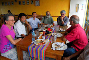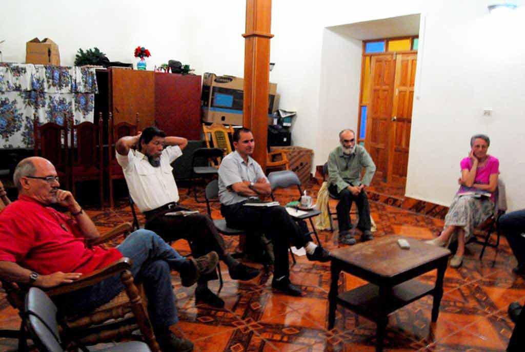 Intorno alle 9,00 siamo arrivati alla casa del Vescovo – Mons. Mario Fiandri, un altro sardo in terra guatemalteca - dove si sarebbe svolta la riunione. Personalmente non vedevo il Vescovo da novembre/dicembre dello scorso anno, cioè dall’ultima volta che ero stato in Guatemala, quando mi trovavo a Dolores per seguire i lavori di ristrutturazione del dormitorio del Collegio San Martin de Porres. Dopo i saluti di rito, averlo informato sulla salute di sua madre e avergli dato un veloce resoconto sulla nostra situazione nazionale in seguito alle ultime elezioni italiane, con il Vescovo, abbiamo raggiunto la sala riunioni dove è stata aperta l’assemblea. Oltre a noi 5 erano presenti i responsabili del Progetto educazione della Pastorale Sociale del Vicariato Apostolico del Peten.